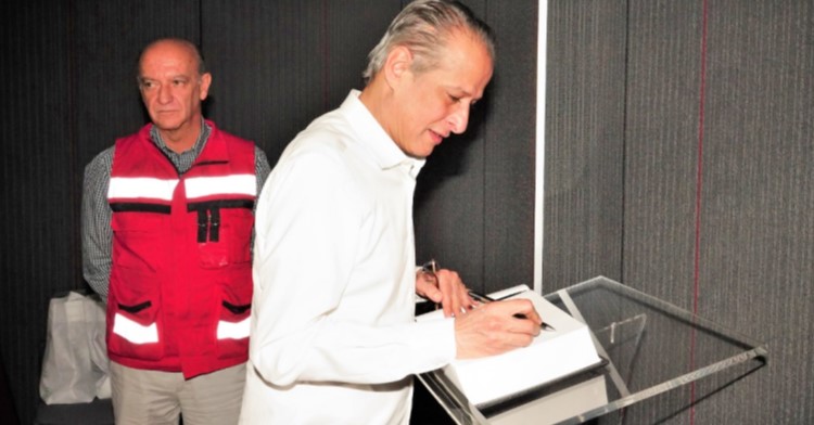 A su paso por el edificio central de la Administración Portuaria Integral de Manzanillo, firmó el Libro de Visitantes