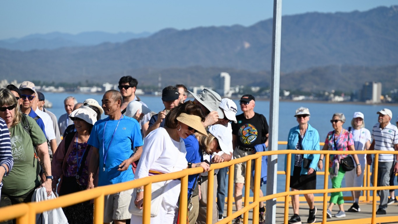 La embarcación, procedente de San Francisco, California, transporta 4 mil 061 viajeros, de los cuales 2 mil 918 son pasajeros y Mil ciento cuarenta y tres conforman la tripulación.